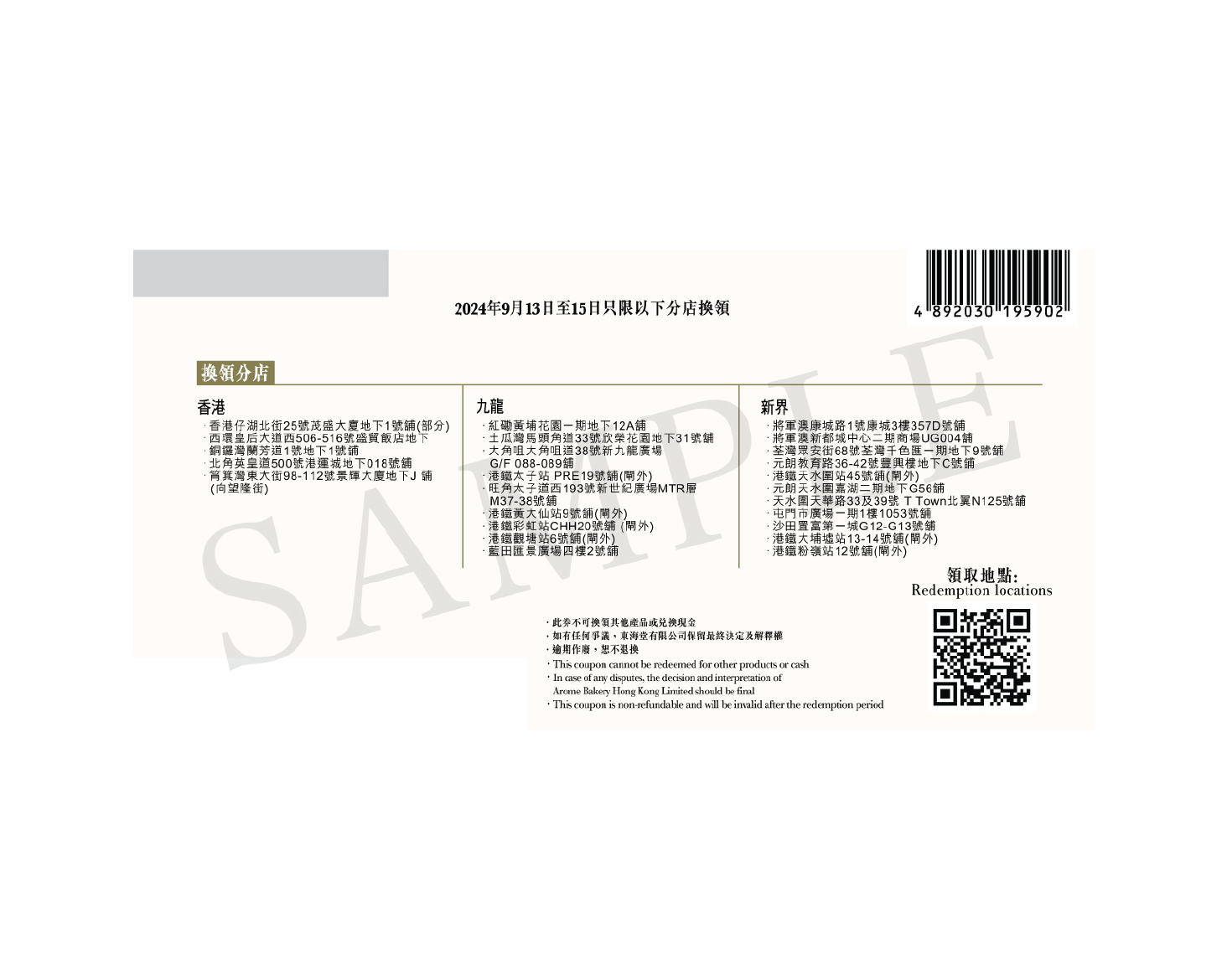 2024年09月13日至2024年09月15日 指定香港東海堂分店適用