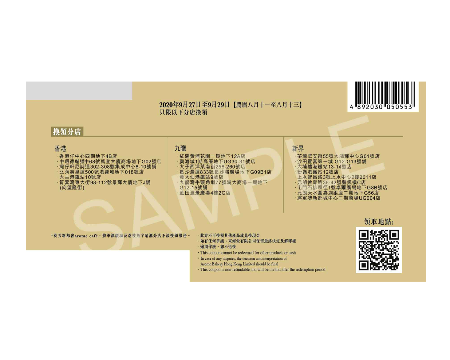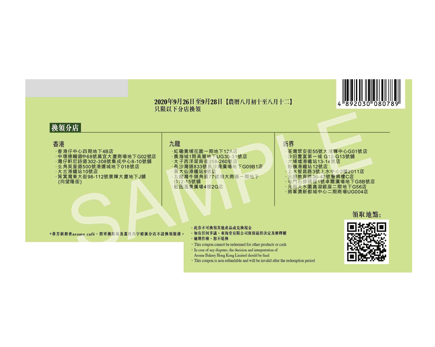 奶黃月餅券4張+雙白券3張+流心抺茶券3張(送貨)